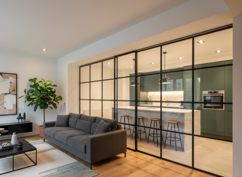 Fabricamos cierres de cocina en cristal en Donostia que combinan diseño, luminosidad y funcionalidad. Soluciones a medida que permiten integrar espacios manteniendo la amplitud visual y mejorando el confort del hogar.