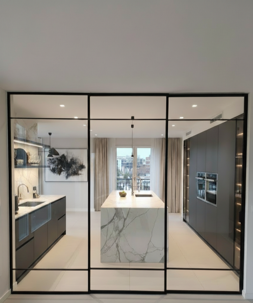 Fabricamos cierres de cocina en cristal en Donostia que combinan diseño, luminosidad y funcionalidad. Soluciones a medida que permiten integrar espacios manteniendo la amplitud visual y mejorando el confort del hogar.